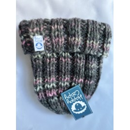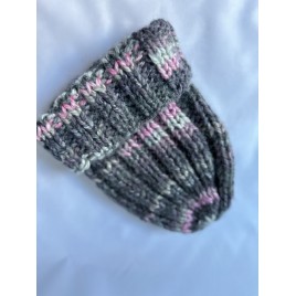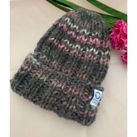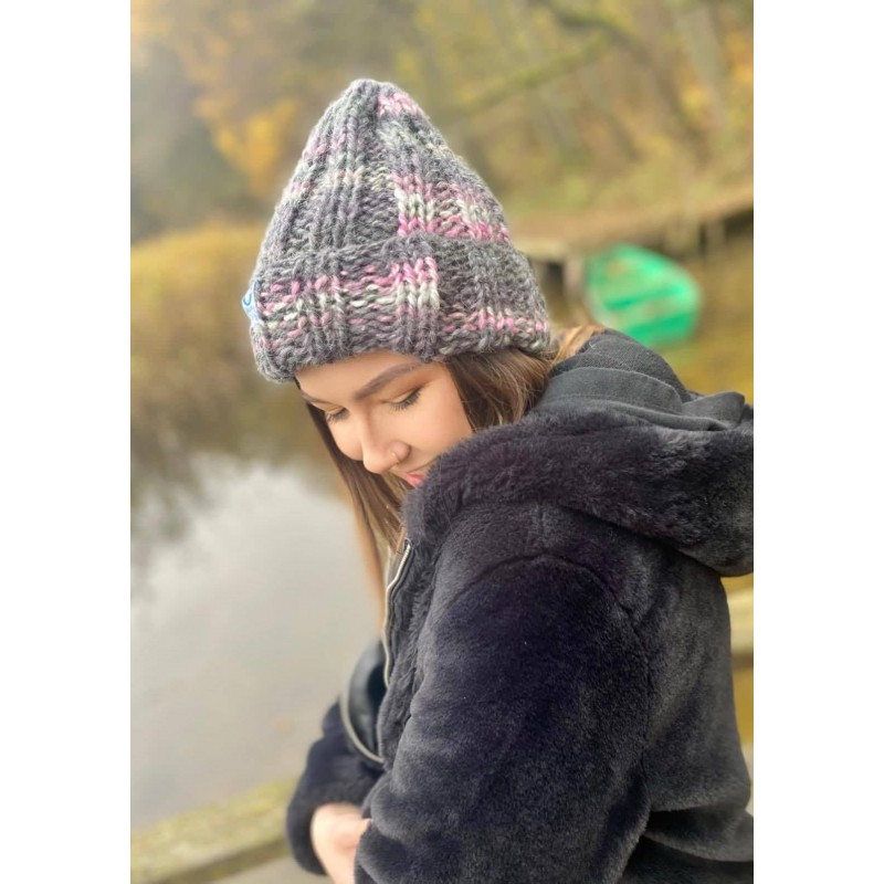 Modna zawijana czapka Rozi, wykonana ręcznie na drutach z włóczki YarnArt