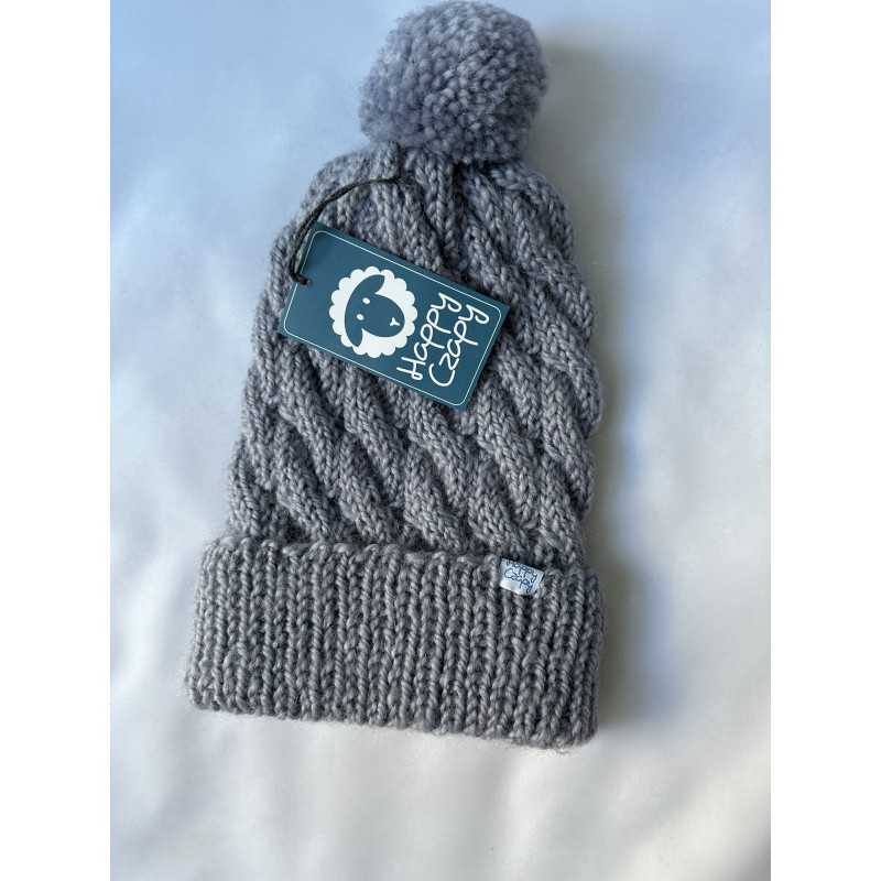 Czapka robiona ręcznie na drutach, 100% wełna, idealna na zimę. Wełna to włókna, które utrzymują balans, a włosy nie elektryzują się, ani nie przetłuszczają się, to zasługa wełny w 1100%.