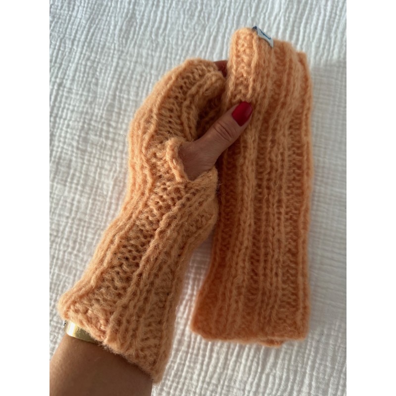 Delikatne i lekkie mitenki SIMPLY w kolorze morelowym.