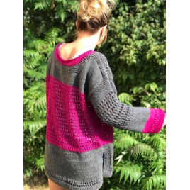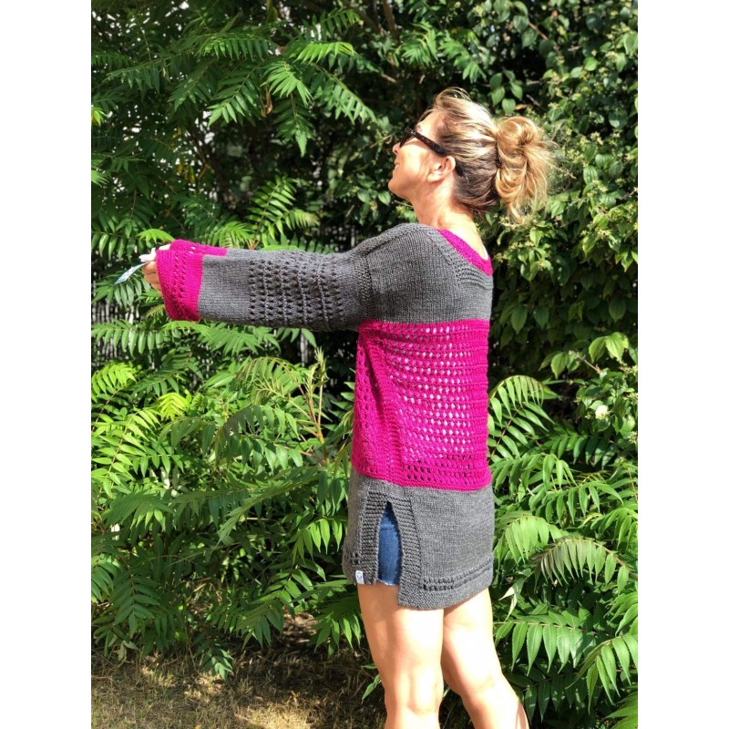 Luźna ażurowa tunika w dwóch kolorach. Połączenie szarości z fuksją to fantastyczny zestaw.