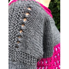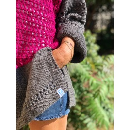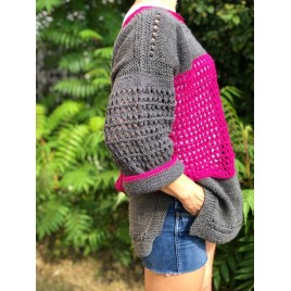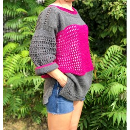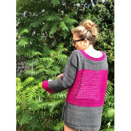 Sweter ażurowy recznie robiony szaro-fukcjowy Loris handmade