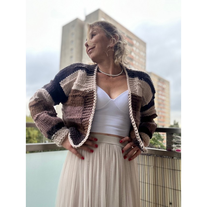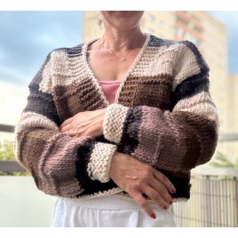 Poczuj Magię Otulenia! Wyjątkowy Kardigan z Naturalnej Wełny w Odcieniach Ziemi.