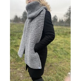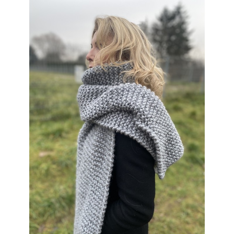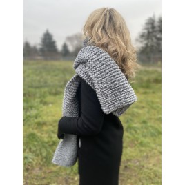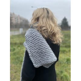 Gruby szalik w pięknym szarym kolorze. Włóczka jest miła i przyjemna oraz bardzo ciepła. Szal pięknie się układa.