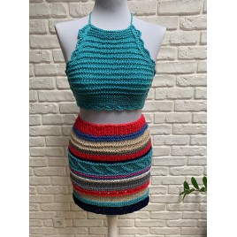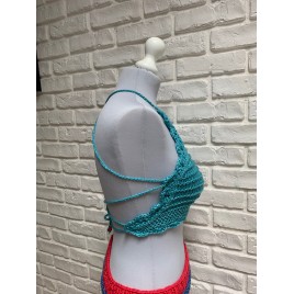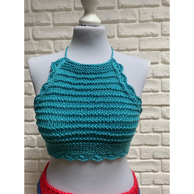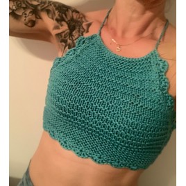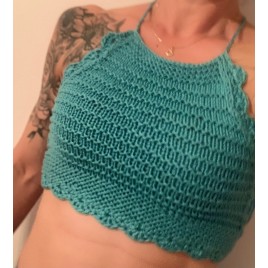 Top crop został zaprojektowany z myślą o lecie. Fantastycznie komponuje się z wieloma stylizacjami, z krótkimi spodenkami będzie również świetnie wyglądać. Zrobione z bawełny Coton5, na drutach w jednym egzemplarzu. To dla osób lubiących unikatowość.