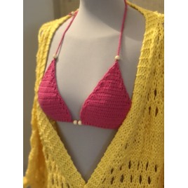 Braletka Pink to jedna z propozycji z kolekcji KNITTED SUMMER. W kolekcji letniej znajdziecie swetry, kardigany, blezery, topy, top cropy, braletki, kostiumy zrobione są ze 100% bawełny wg własnego projektu HappyCzapy, wydziergane ręcznie na drutach i szydełku.
