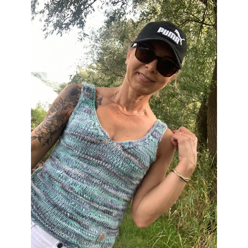Top wykonany jest w jednym egzemplarzu z fantastycznej włóczki, która świetnie podkreśla unikatowość bluzeczki. Jeśli lubisz rękodzieło i unikatowe produkty to idealnie miejsce dla Ciebie. Tworze własnoręcznie rzeczy z włóczki. Każda rzecz wykonana przeze mnie to pasja, serce i perfekcjonizm wykonania.