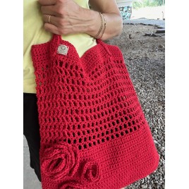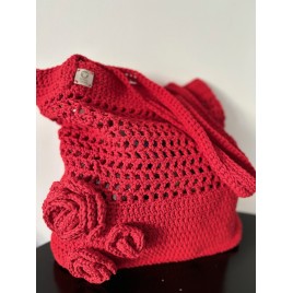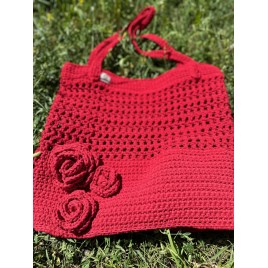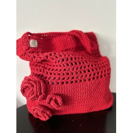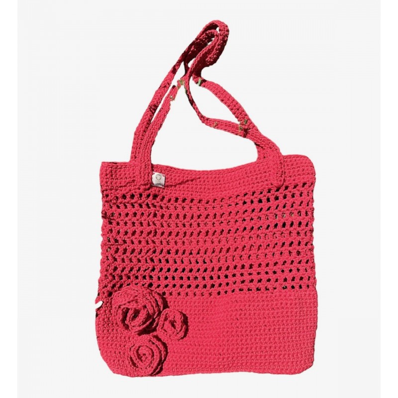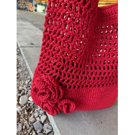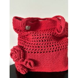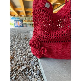 Na przodzie torebki umieszczono trzy efektowne, ręcznie robione róże na szydełku, które nadają jej romantycznego i kobiecego wyglądu. Długie, wygodne uchwyty umożliwiają noszenie torebki na ramieniu.