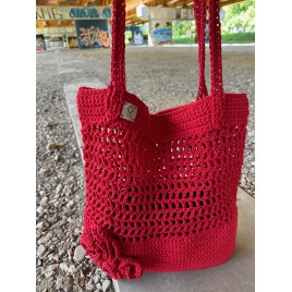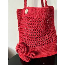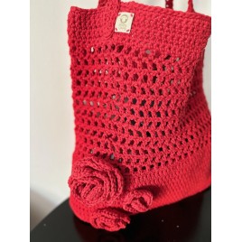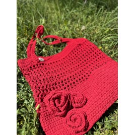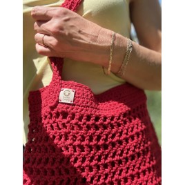 Ta piękna, czerwona torebka została wykonana ręcznie z wysokiej jakości włóczki, co gwarantuje jej trwałość i unikalny charakter. Ażurowy wzór w górnej części dodaje jej lekkości i letniego uroku, a solidny, gęsty splot w dolnej części zapewnia wytrzymałość i stabilność.