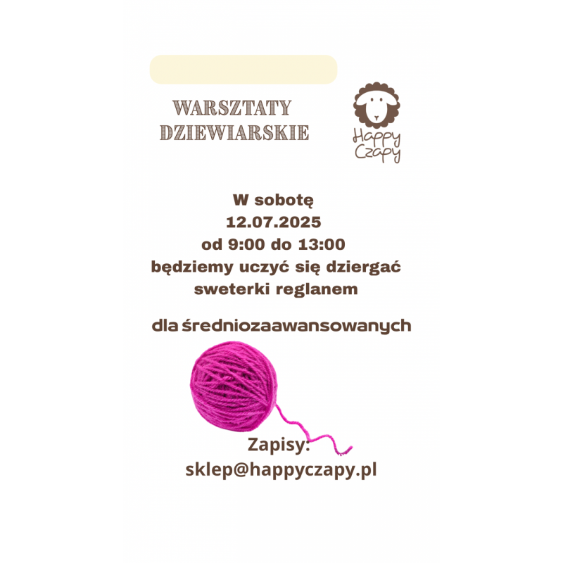 Zapisy: sklep@happyczapy.pl w temacie proszę wpisać „warsztaty dla średniozaawansowanych”